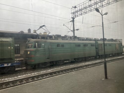 ソ連時代のエレクトリーチカの車内を改装したと思われる車輌とすれ違い大興奮!同室の女性が怪しげな視線を向けてくるのも気にせず写真を撮りまくった。