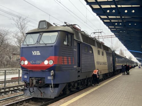 ホームに入ると、すでにウクライナ鉄道の客車列車が停まっている!!大興奮の瞬間である。