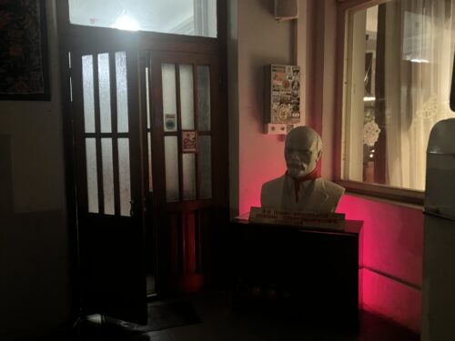 「CHOBA B CCCP」(ソ連に戻る)という素晴らしい店名のお店。ウクライナ料理のメニューが多く、店員さんもウクライナ系っぽい雰囲気だった。接客が非常に丁寧で、メニューの意味がわからずスマホの電波も届かないのでGoogleレンズも使えなくて悩んでいると、Wi-fiのパスワードを教えてくれ、その入力でまたつまずくと一字一字読み上げて確認してくれた。怪レい東洋人にそこまでしてくれて本当に感謝しかない。