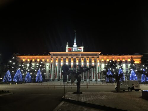 ホステルに帰る途中に見た、ライトアップされたティラスポリ市庁舎。これは宿泊しないと見れないので、日帰り観光がメインの沿ドニではかなり貴重な光景ではないかと思う。