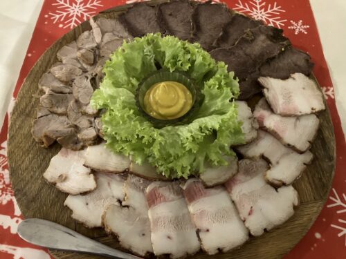 サーロ。結構いい肉を使っているらしく旨味があって美味しかったが、ボルシチで思った以上にお腹が満たされており全部食べられなかった。ここで私のコミュ障が発動し残して帰ろうとしたが、店員さんが気を回してテイクアウト用に包んでくれた。
