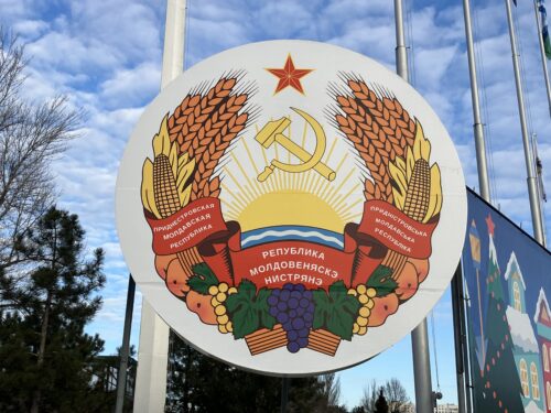 沿ドニの国章。鎌と槌のマークと、赤い星が描かれ、「ソ連はまだ無くなっていない」と主張するかのようでとっても良い。
