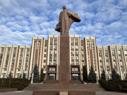おそらく沿ドニでもっとも有名な場所だと思われるレーニン像。背後の建物は共和国政府庁舎。