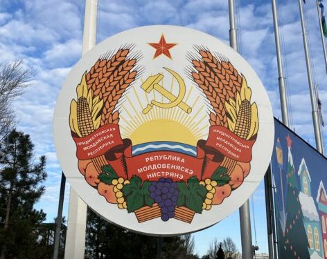 沿ドニの国章。鎌と槌のマークと、赤い星が描かれ、「ソ連はまだ無くなっていない」と主張するかのようでとっても良い。